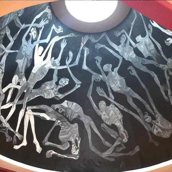 Inside Oswaldo Guayasamín’s home atop a hillside in the north of Quito, a very special work of art was added to his personal collection in 2016. It is a portrait-size painting of a family of pandas in what is presumably a bamboo forest. It was a gift from China’s first lady to his children, who manage the Fundación, as a token of appreciation for their father’s legacy. This work of art came up as our tour of his home was wrapping up, and is not at all representative of or allusive to his art. We reflected on this for a moment as we stepped outside to his courtyard, towards the giant tree where his ashes were spread in 1999. And then it clicked.